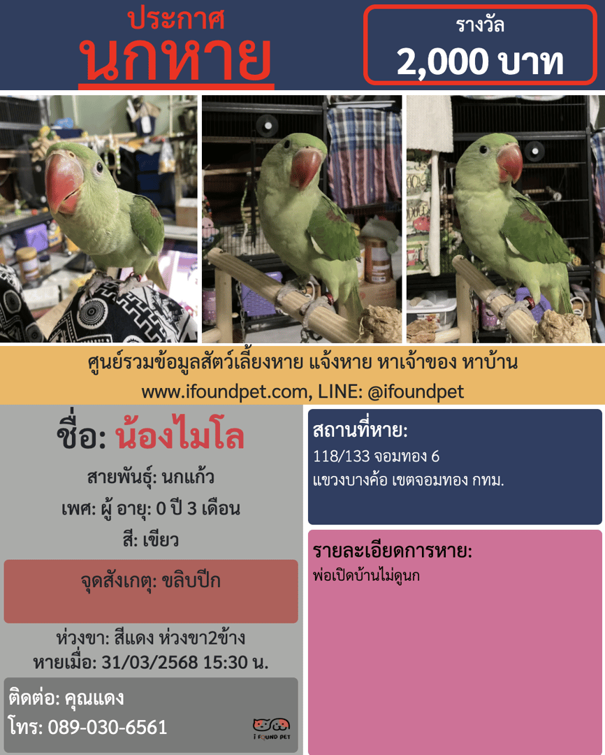 ติดต่อเจ้าของประกาศแจ้งหายง่าย รวดเร็ว ถึงไม่หายก็ลงได้ กรณีมีสัตว์เลี้ยงหายใกล้ท่าน ระบบจะมีแจ้งเตือนไปยังท่าน เพื่อให้ช่วยกันสอดส่องตามหา