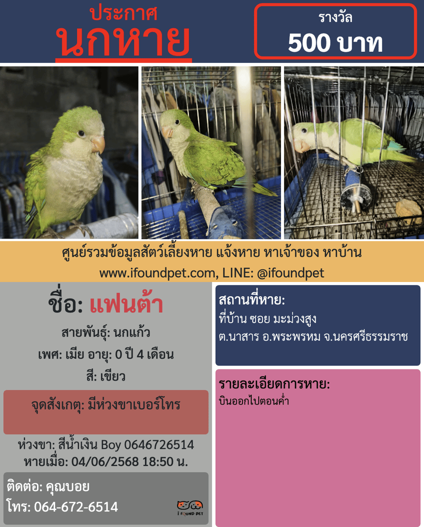 ช่วยกันกดแชร์เพื่อเป็นอีกหนึ่งช่องทางในการตามหาแฟนต้า