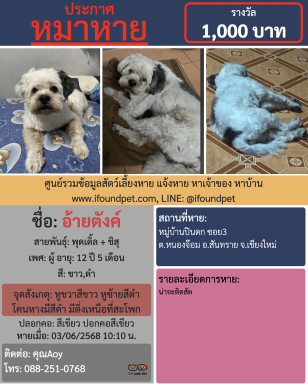 | เพศ | ผู้ (ยังไม่ได้ทำหมัน) |