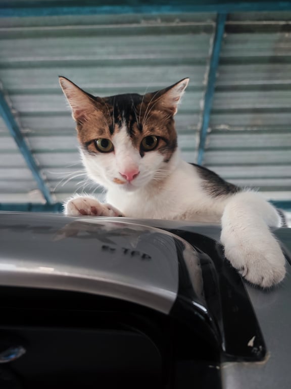 น้องขึ้นไปบนหลังคา คาดว่าจะโดนแมวตัวอื่นไล่