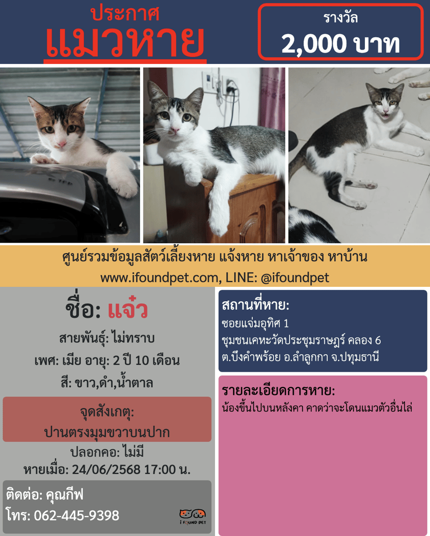 ช่วยกันกดแชร์เพื่อเป็นอีกหนึ่งช่องทางในการตามหาแจ๋ว