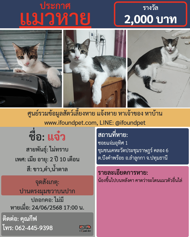 | เพศ | เมีย (ทำหมันแล้ว) |
