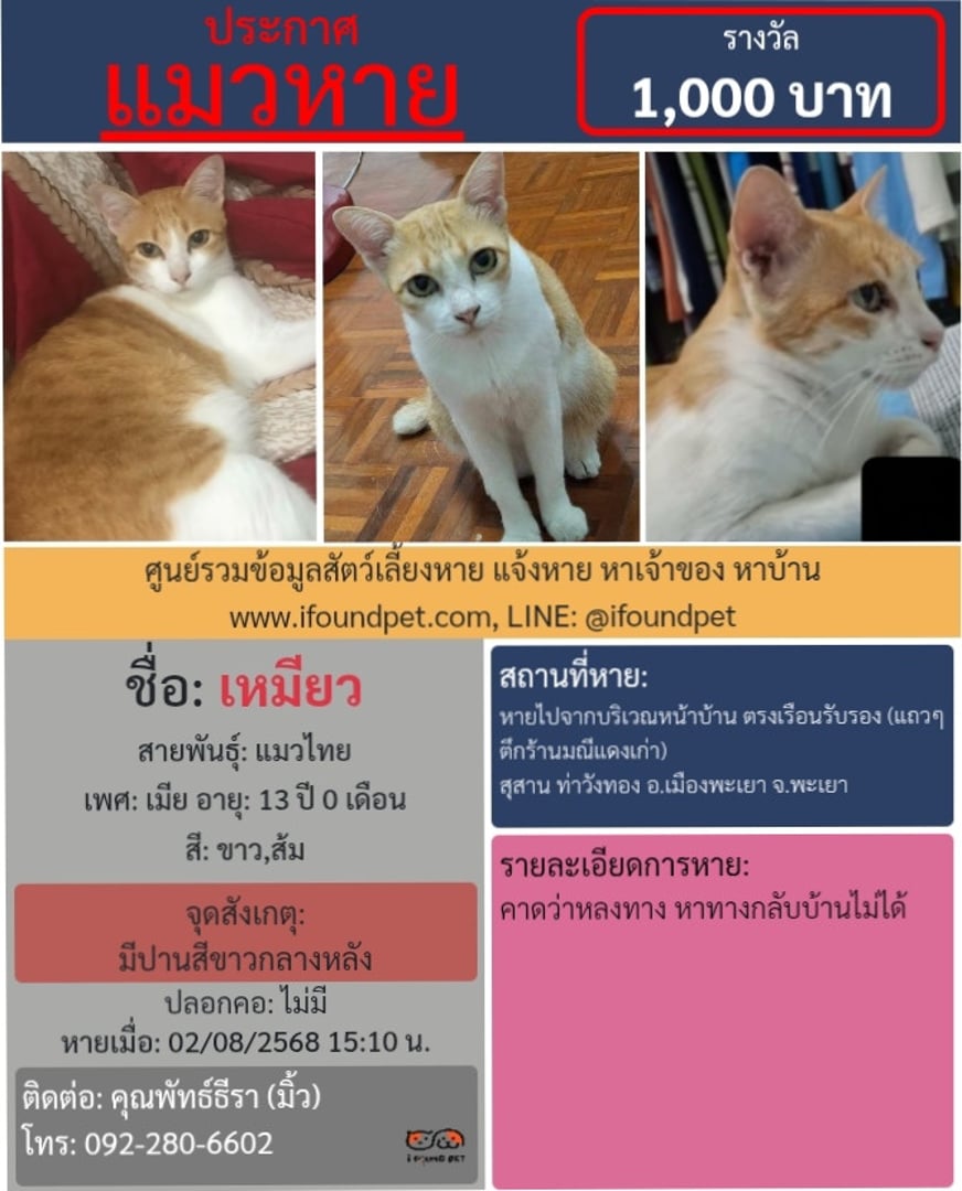 ช่วยกันกดแชร์เพื่อเป็นอีกหนึ่งช่องทางในการตามหาเหมียว