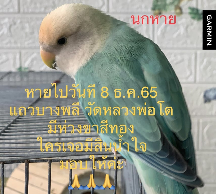 น้องเป็นนกเชื่องค่ะ ใครเจอรบกวนแจ้งหน่อยค่ะ น้องมีเพื่อนรออยู่ที่บ้าน