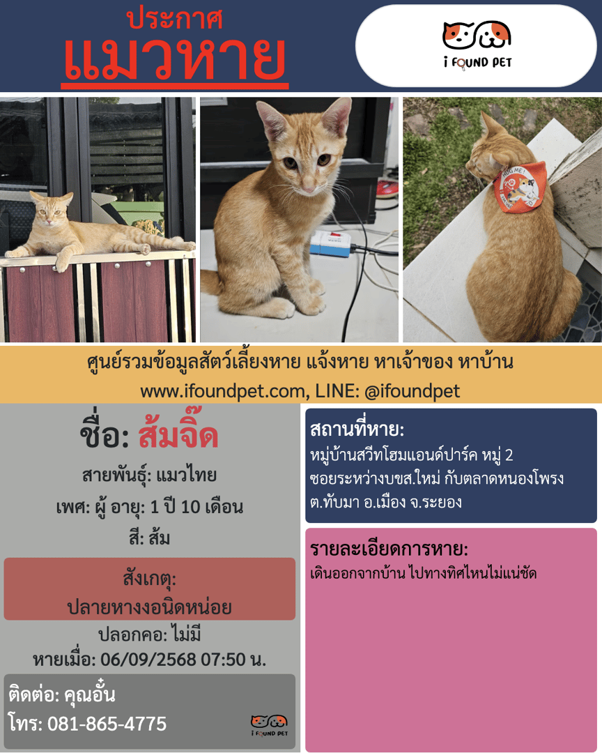ช่วยกันกดแชร์เพื่อเป็นอีกหนึ่งช่องทางในการตามหาส้มจิ๊ด