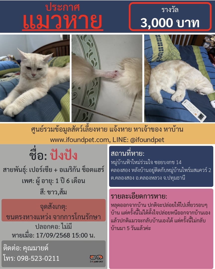 ช่วยกันกดแชร์เพื่อเป็นอีกหนึ่งช่องทางในการตามหาปังปัง