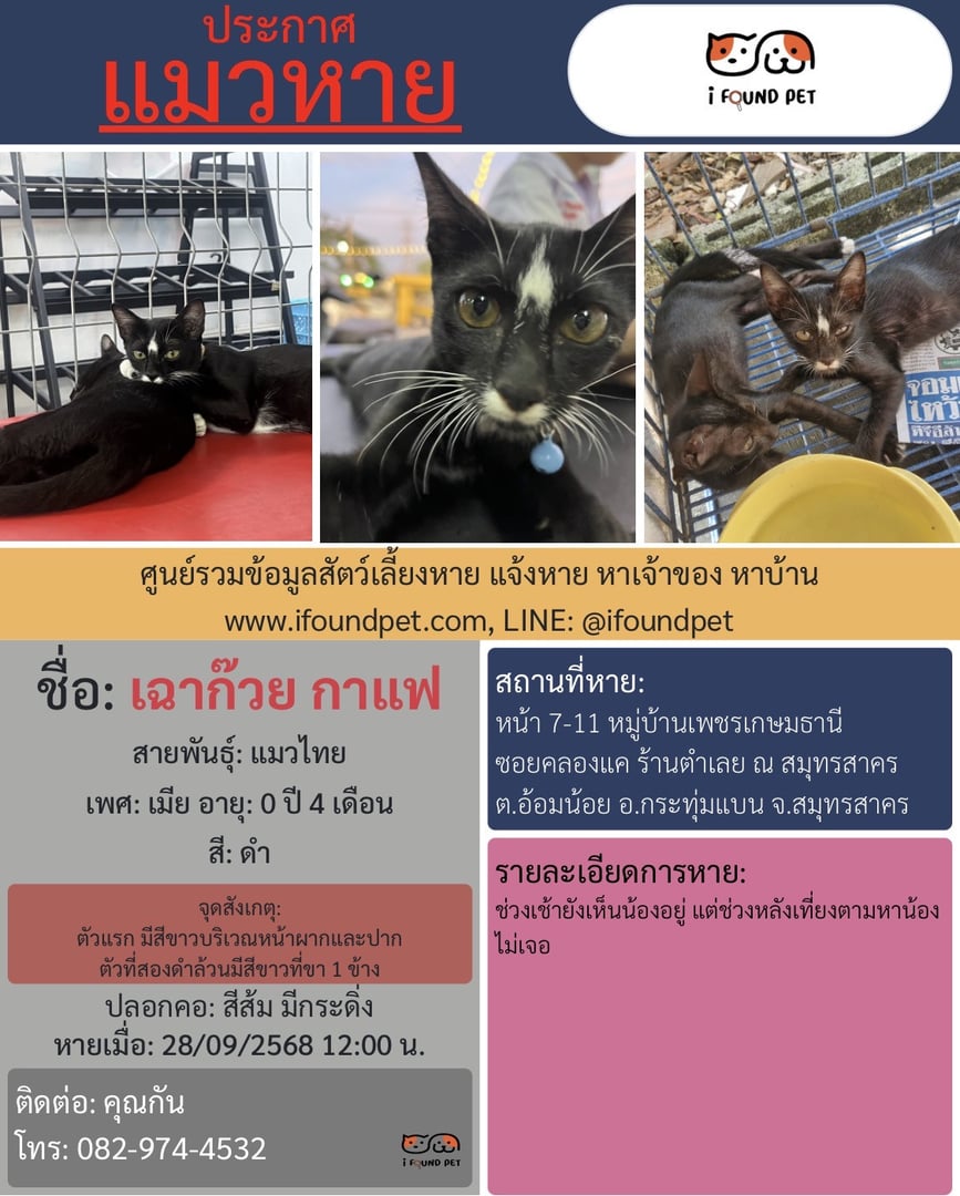 ช่วยกันกดแชร์เพื่อเป็นอีกหนึ่งช่องทางในการตามหาเฉาก๊วย กาแฟ