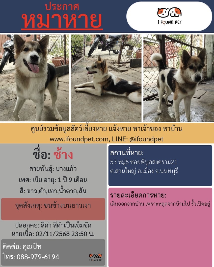 ติดต่อเจ้าของประกาศแจ้งหายง่าย รวดเร็ว ถึงไม่หายก็ลงได้ กรณีมีสัตว์เลี้ยงหายใกล้ท่าน ระบบจะมีแจ้งเตือนไปยังท่าน เพื่อให้ช่วยกันสอดส่องตามหา