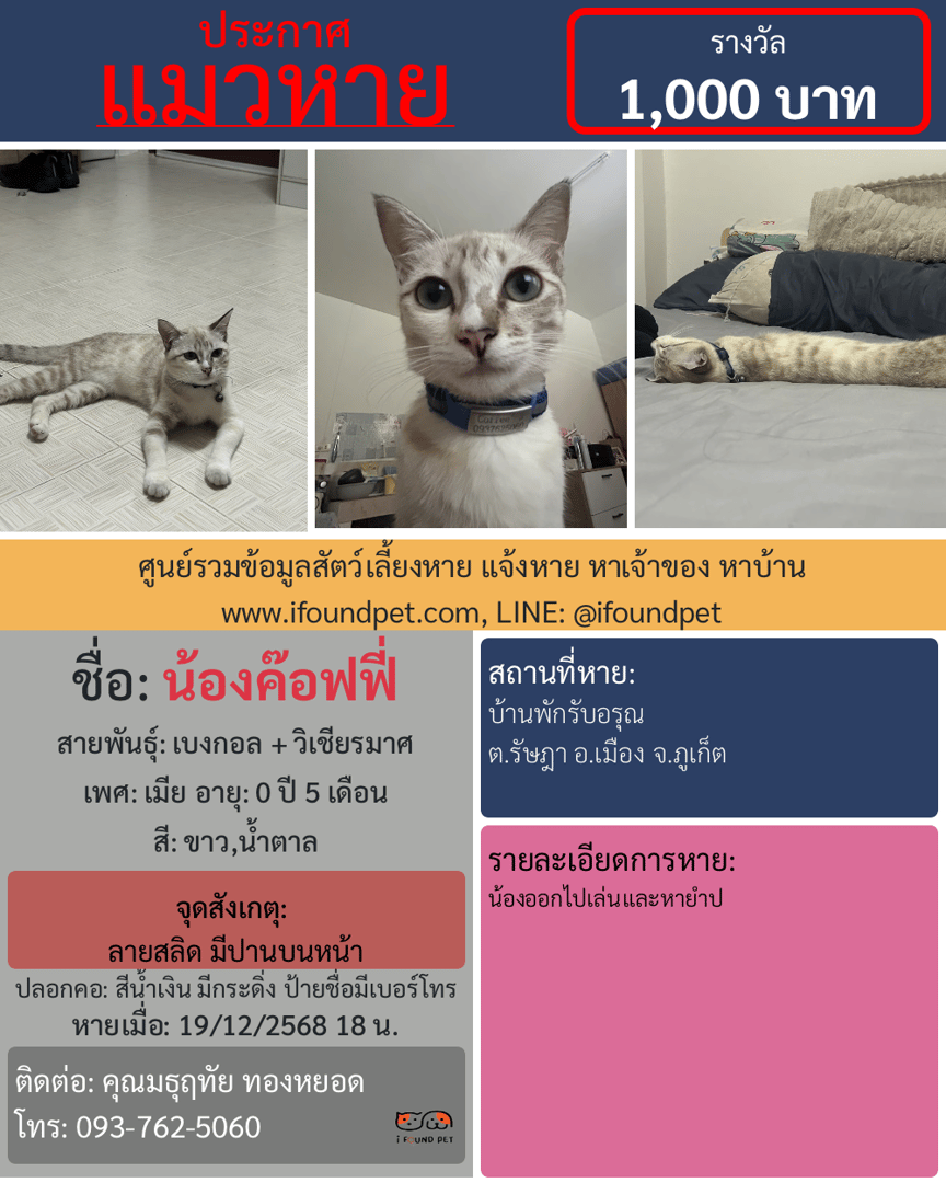ช่วยกันกดแชร์เพื่อเป็นอีกหนึ่งช่องทางในการตามหาน้องค๊อฟฟี่