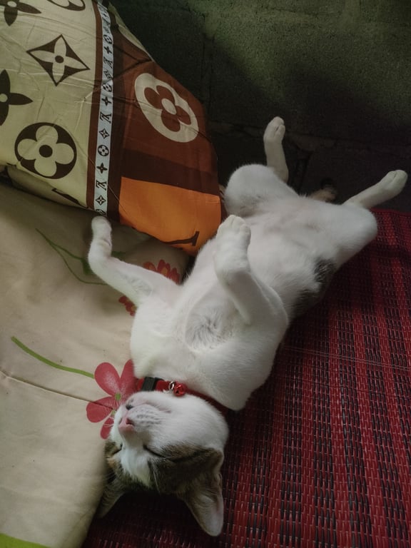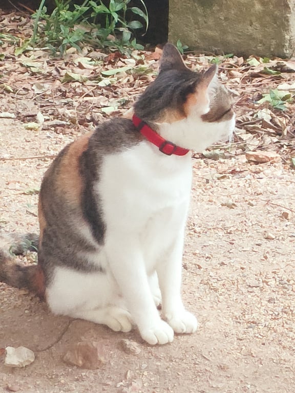 มีปลอกคอสีแดง มีกระดิ่งที่คอ