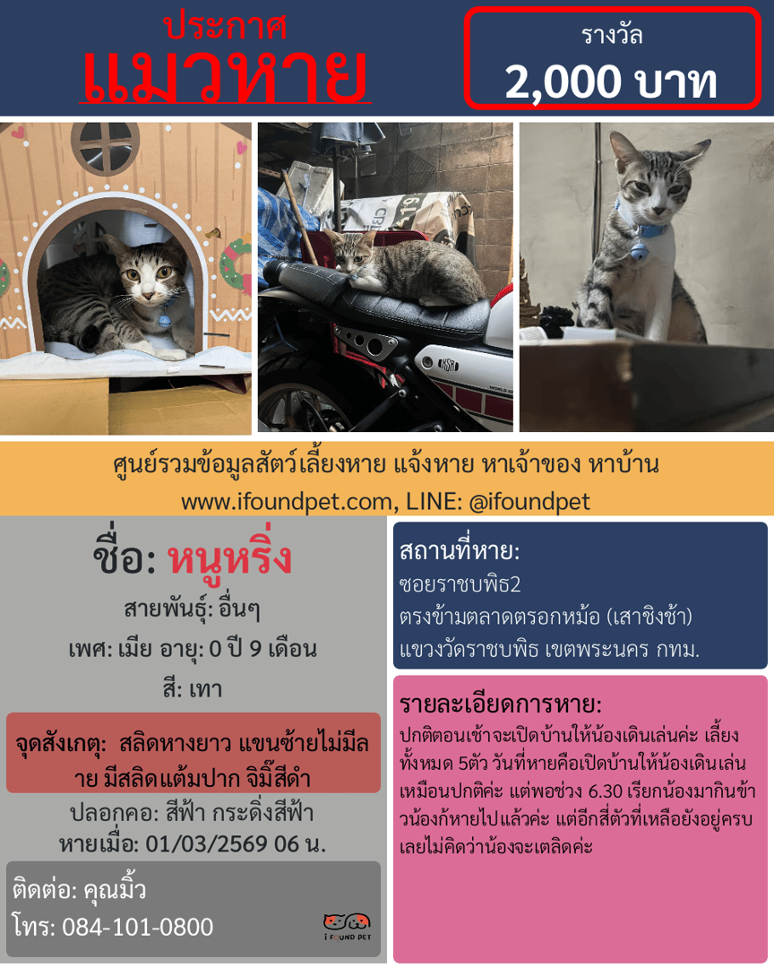 ช่วยกันกดแชร์เพื่อเป็นอีกหนึ่งช่องทางในการตามหาหนูหริ่ง