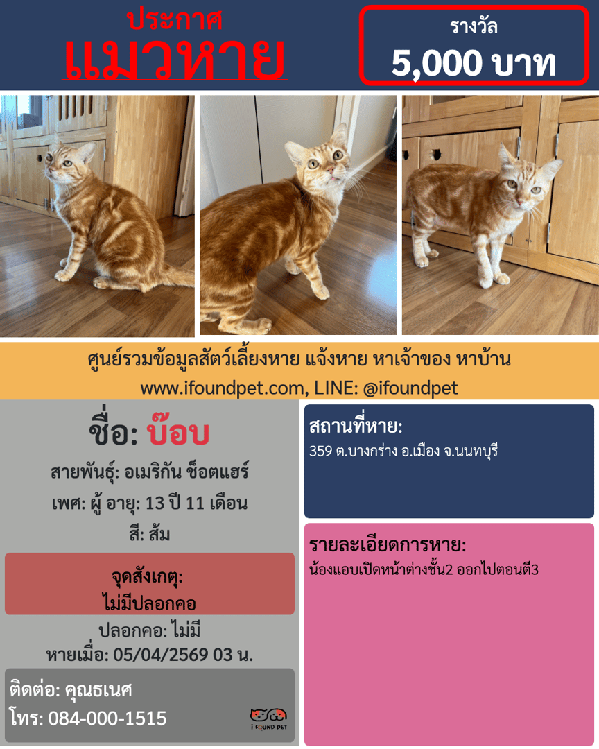 ช่วยกันกดแชร์เพื่อเป็นอีกหนึ่งช่องทางในการตามหาบ๊อบ
