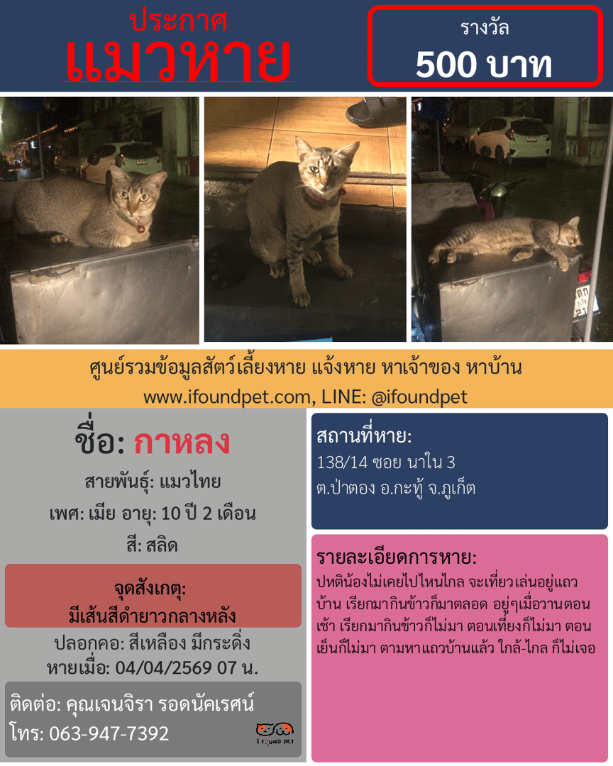 ช่วยกันกดแชร์เพื่อเป็นอีกหนึ่งช่องทางในการตามหากาหลง