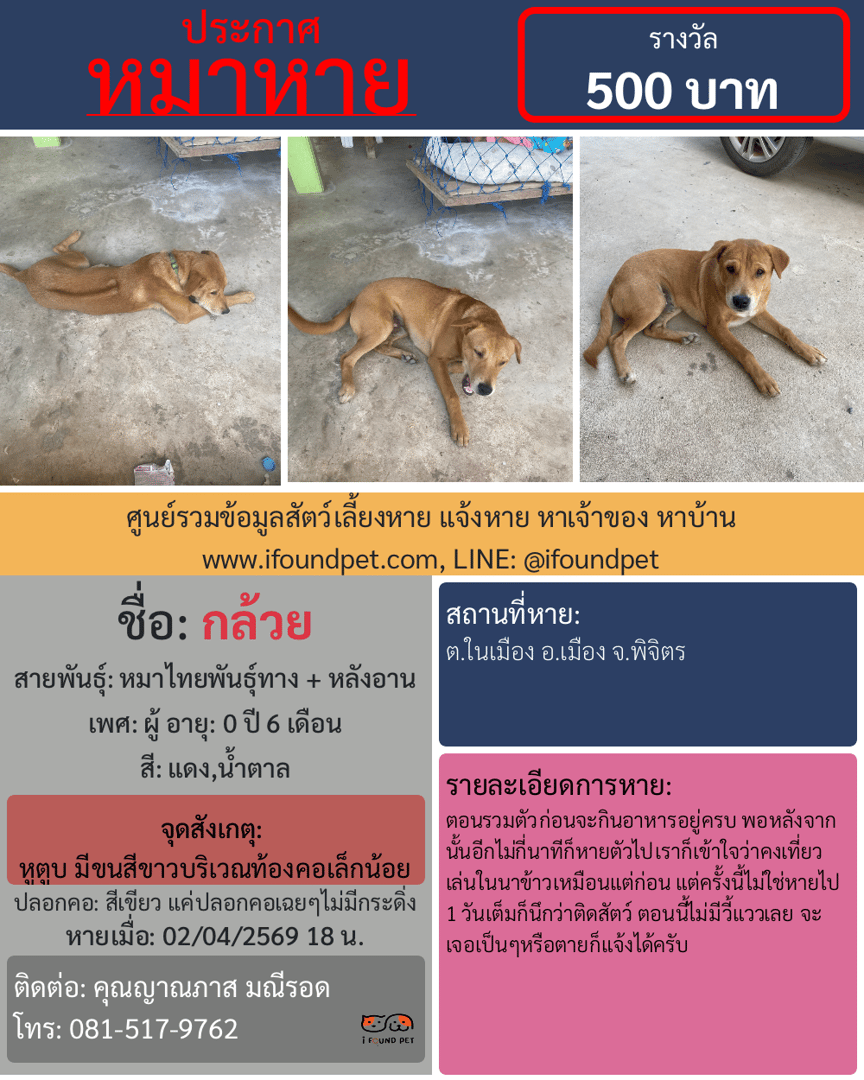 ช่วยกันกดแชร์เพื่อเป็นอีกหนึ่งช่องทางในการตามหากล้วย