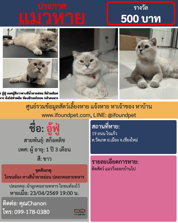 | เพศ | ผู้ (ยังไม่ได้ทำหมัน) |