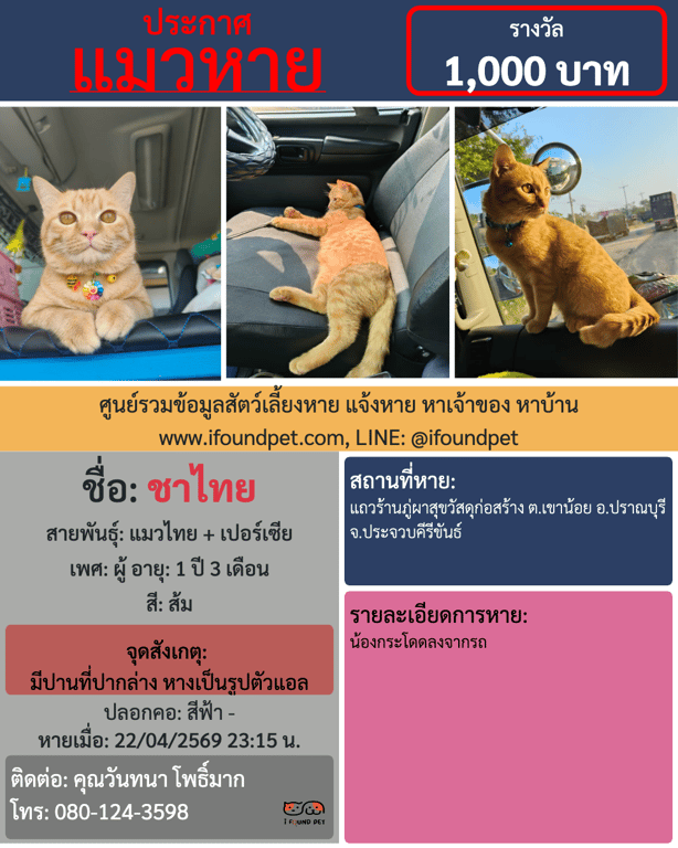 | สายพันธุ์ | แมวไทย + เปอร์เซีย |