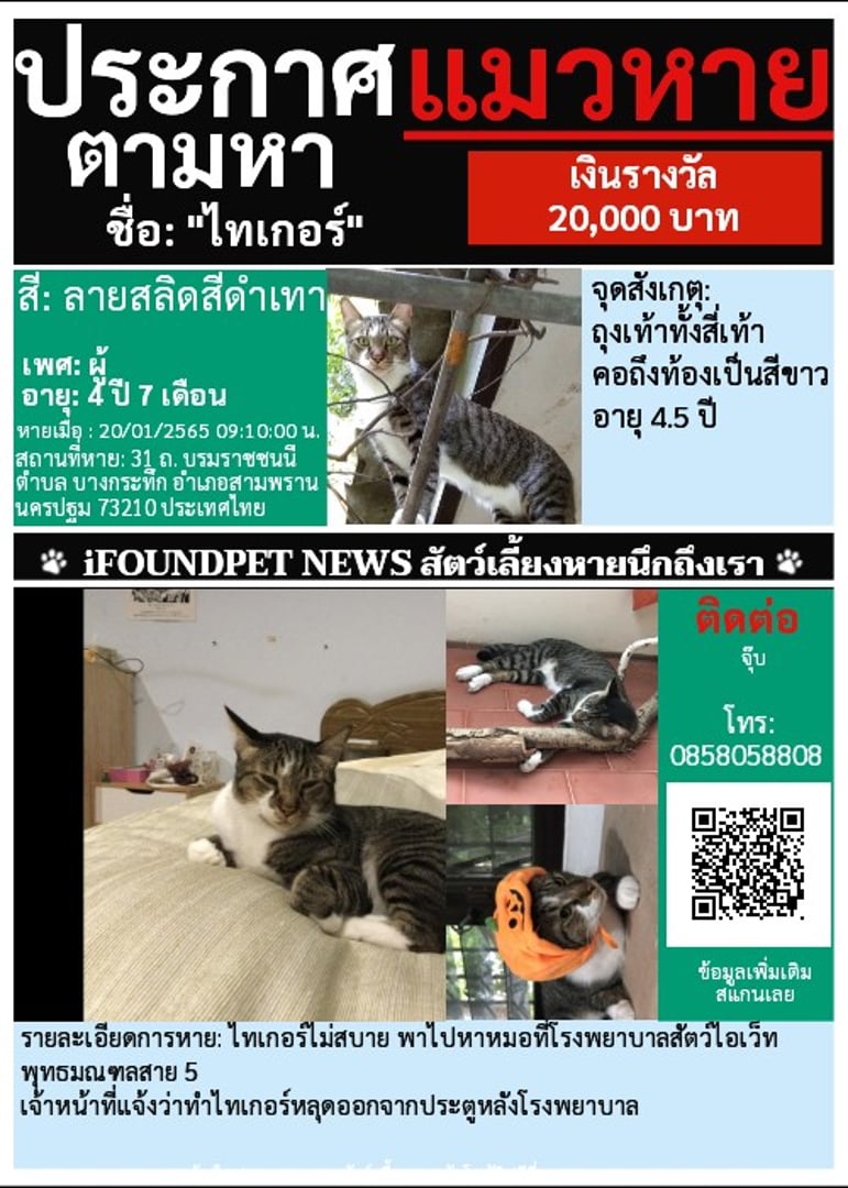ช่วยกันกดแชร์เพื่อเป็นอีกหนึ่งช่องทางในการตามหาไทเกอร์