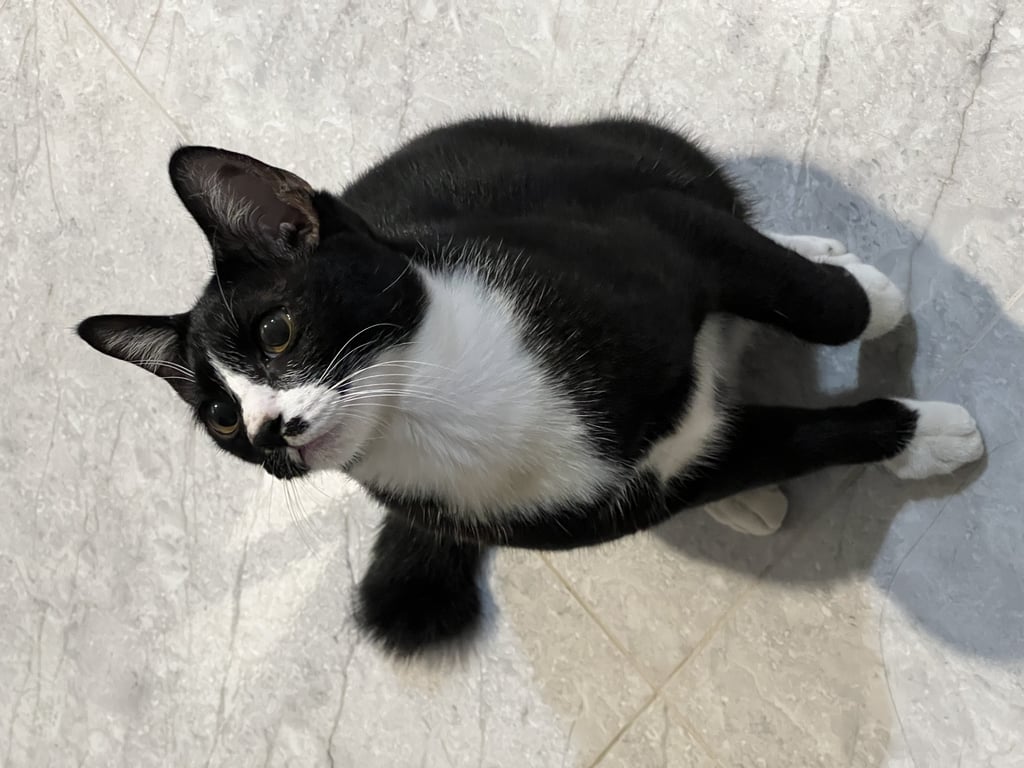 หางกวัก มีไฝระหว่างบริเวณจมูกและหนวด ตาเหลือง ใบหน้าดำครึ่งนึง ขาวครึ่งนึง