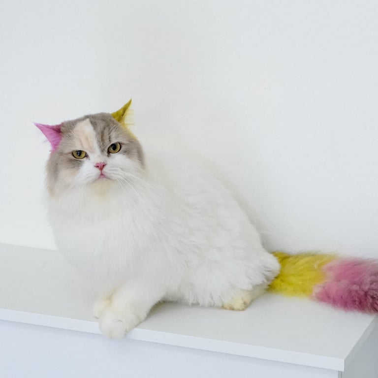 น้องหายตอนย้อมสีขน หูและหางชมพูเหลือง
