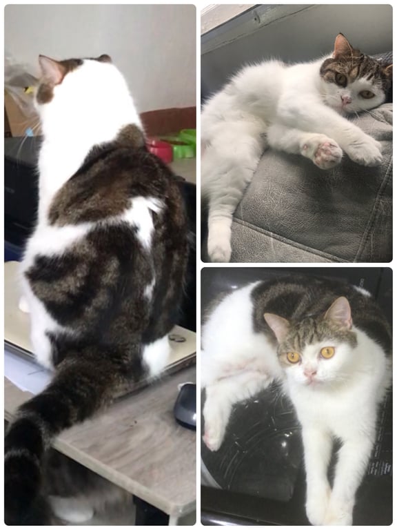 หน้าขาว กระหม่อมสามสี ท้องขาว หลังคอขาว มีแผลที่ท้อง เป็นภูมิแพ้กำลังรักษา