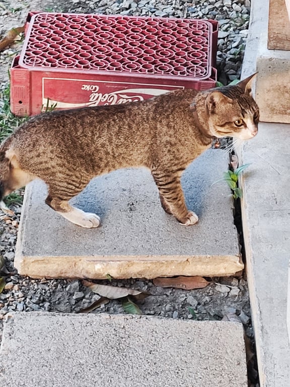 น้องน่าจะเป็นตัวผู้ ลายสลิด หางม้วนเล็กน้อย เท้าหลังใส่ถุงเท้า