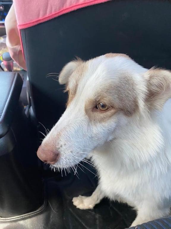 เมื่อวันที่ 26 มกรา พบหมาสีขาว ด่างน้ำตาล เพศผู้ หลงทาง วิ่งอยู่กลางถนน บริเวณถนนสุวินทวงศ์52 (ขาเข้ากรุงเทพ) แถวกรมที่ดิน