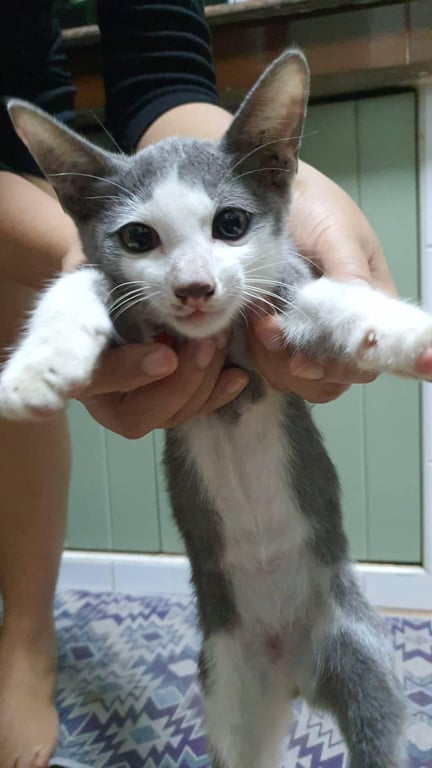 เพศผู้ อายุประมาณ 2 เดือน มีปลอกคอ ขาหลังหักด้านขวา