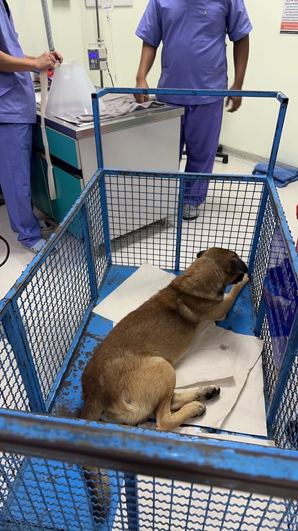 พบสุนัขเพศผู้ นอนชิดเบริเออร์ช่องทางด่วน ก่อนขึ้นคู่ขนานลอยฟ้าขาเข้ากรุงเทพ ประมาณ 500 เมตร ตอนนี้พามาตรวจร่างกายที่โรงพยาบาลสัตว์มหิดล