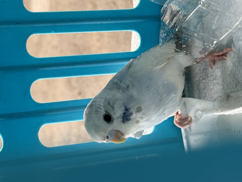 สีขาวฟ้าอ่อนๆ มีแต้มที่แก้มเป็นสีฟ้าเข้ม