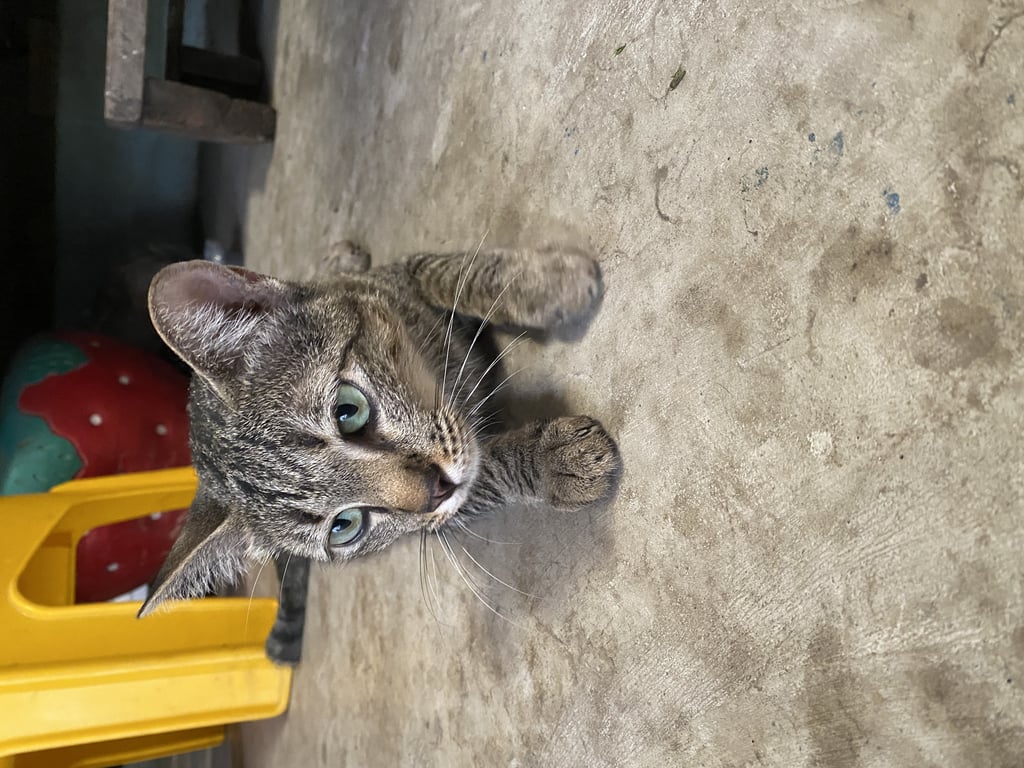 น้องหลงมาอยู่ตรงหลังบ้านเราค่ะไม่แน่ใจว่าน้องกระโดดลงมาหรือตกลงมาน้องไม่มีปลอกคอน้องเป็นเพศเมียค่ะ บ้านเราอยู่ตรงข้ามร้านก๋วยเตี๋ยวปลาชินเขตค่ะ