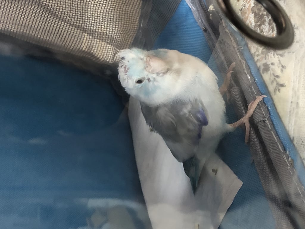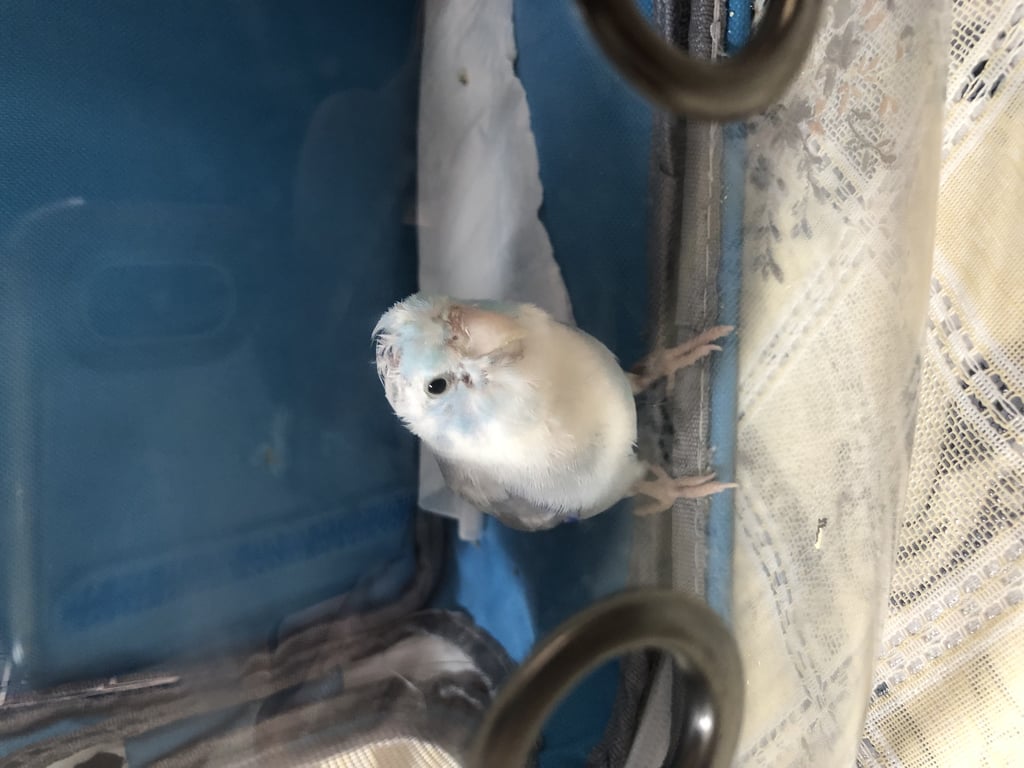 สีขาวหลังสีเทา หัวสีฟ้า ค่อนข้างคุ้นคนแต่กลัวมือ ตอนพบมีภาวะขนร่วงบนหัว