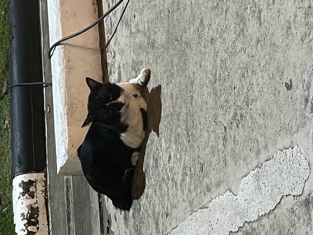 หางงอ ยังไม่ทำหมัน ขนดูฟูๆ ดูหายมานานแล้ว ขนดูเปรอะแต่ค่อนข้างนิ่ม นิ่มเหมือนมีคนเคยดูแล ตามตัวมีแผลกับรอยเปื้อนบ้างค่ะ