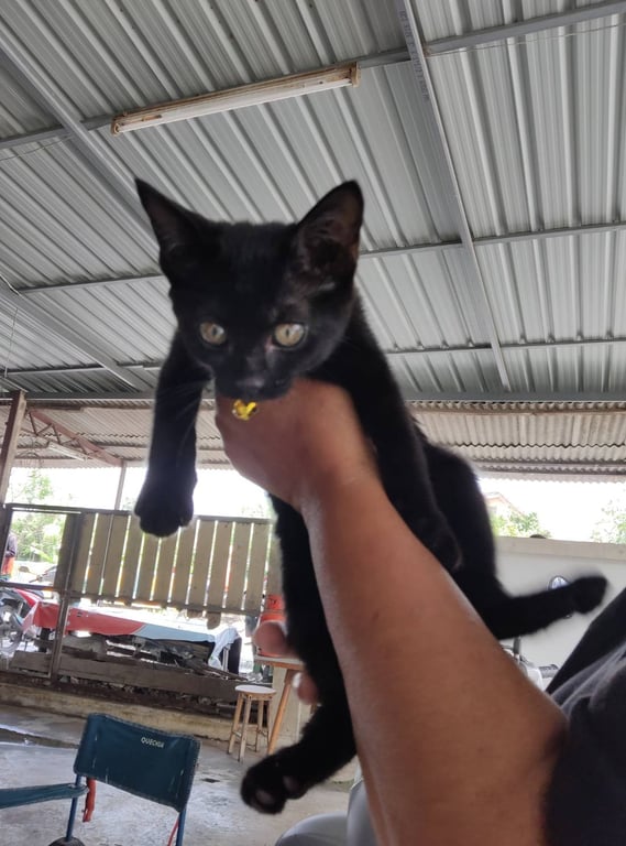 พบเจอลูกแมวสีดำ อายุน่าจะ2-3เดือน บริเวณหมู่บ้านชัยพฤกษ์ คลองถนน น้องขี้อ้อนมาก ติดคน ขนนิ่ม ไม่มีปลอกคอแต่ที่เห็นในรูปคือเอามาใส่ให้เอง