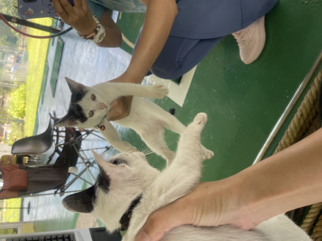 ลูกแมว ไทย ลายวัว ขาวดำ ผมดำแสกกลาง อายุ 2 เดือนขี้อ้อน คุ้นคนมากๆ