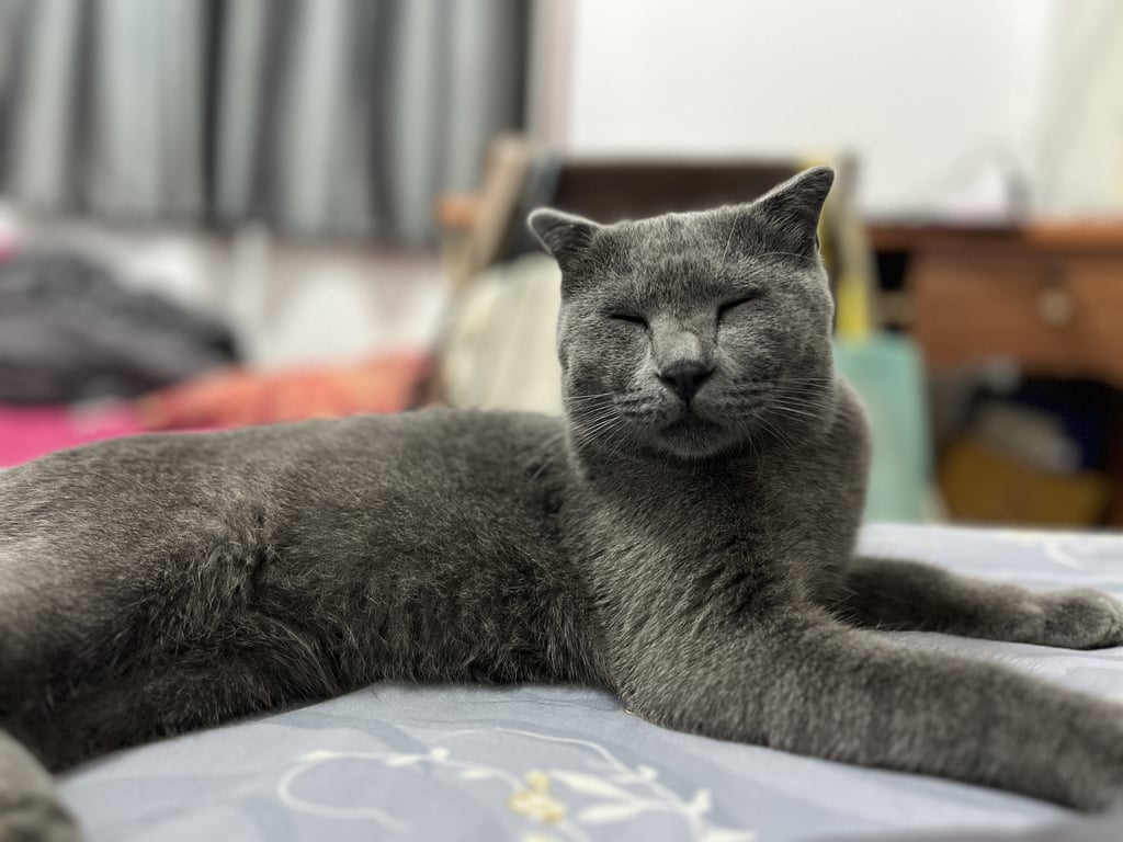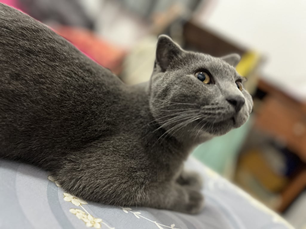 แมวโตตัวสีเทา ไม่มีปลอกคอไม่กลัวคน ขี้อ้อน หน้าตาสะอาด หูสะอาดไม่มีขี้หู มีอาการร้องติดสัตว์