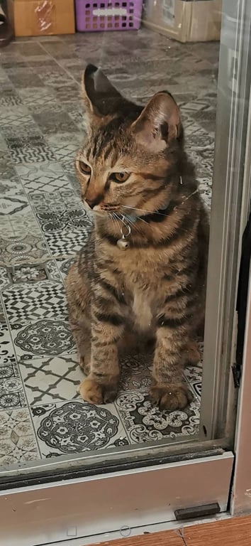 น้องหลุดมาข้างถนน วิ่งเข้ามาที่ร้านข้าวแกงครัวนายตุ้ม ดูตกใจ มีปอกคอ น่องเข้ากับคนได้ง่าย ยิมให้อุ้ม คาดว่ามีเจ้าของ