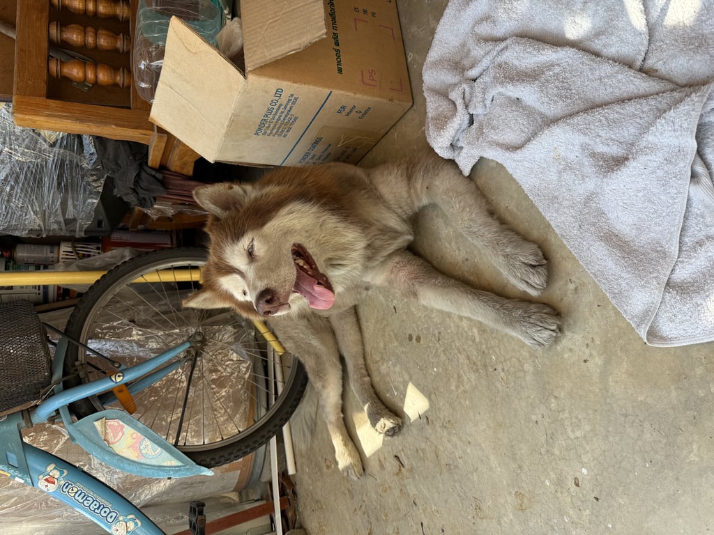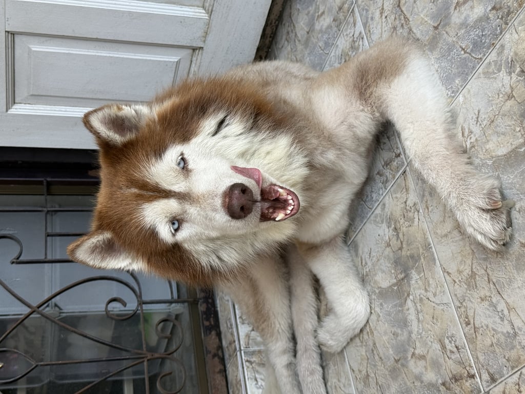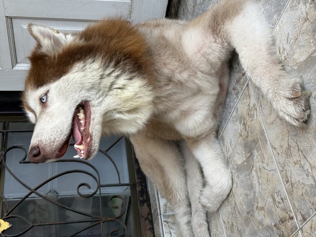ตาสีฟ้าขาว ขนโดนตัดมา มีขนแค่ตรงหัว