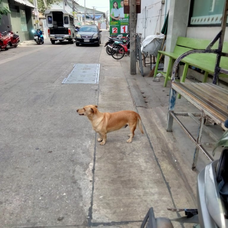 หน้าปากซอยทางเข้าวัดครุนอก น้าวินมอเตอร์ไซค์บอกว่า น้องมักจะมาแถววินปากซอยช่วงเช้าถึงเที่ยง ก่อนปีใหม่ไม่เคยเห็น น่าจะหลงมาเพราะตกใจเสียงพลุ