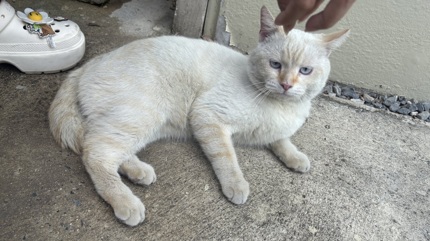 ตาสีฟ้าทั้งสองข้าง ตัวสีขาว ที่หางมีลาบสีส้ม