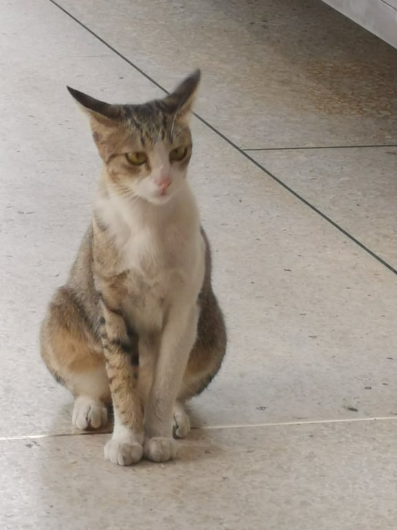 น้องสลิดมาร้องตามโต๊ะอาหาร เชื่องมาก ไม่เหมือนแมวจร ไม่มีปลอกคอ เจ้าของร้านไม่เคยเห็น แต่บอกว่าน่าจะเป็นแมวบ้านใครหลงเข้ามาแล้วกลับบ้านไม่ถูก
