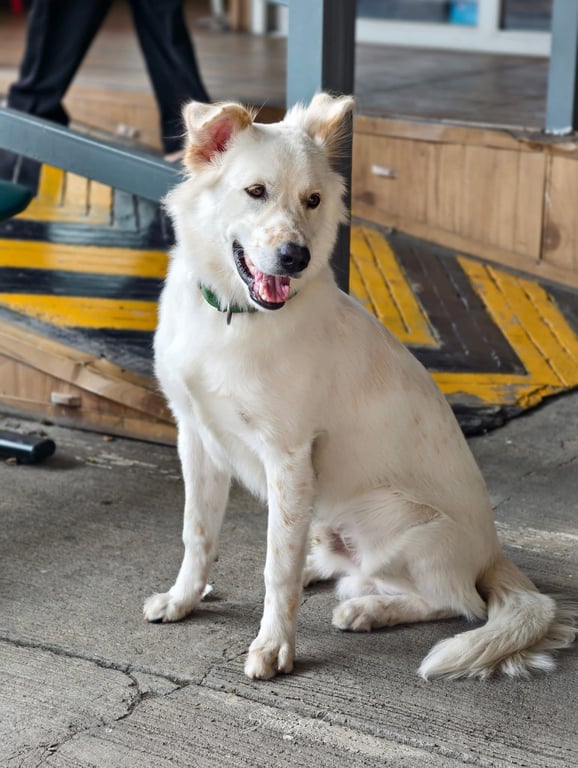 สีครีมตัวสะอาดมีจุดจางๆสีน้ำตาลตามตัว จมูก หางเป็นพวง