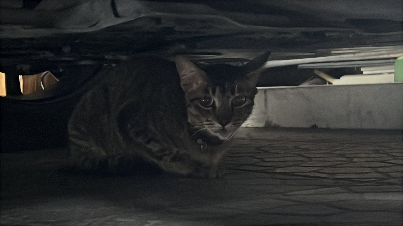 น้องมาหลบฝนอยู่ใต้ท้องรถ