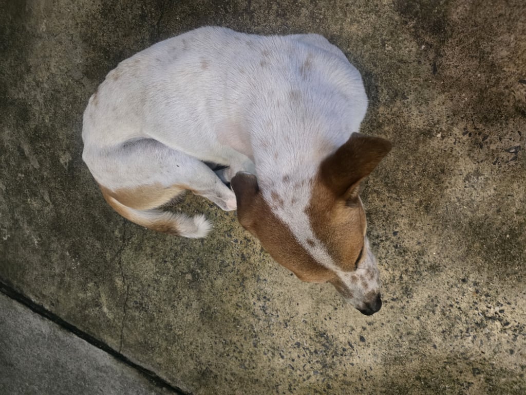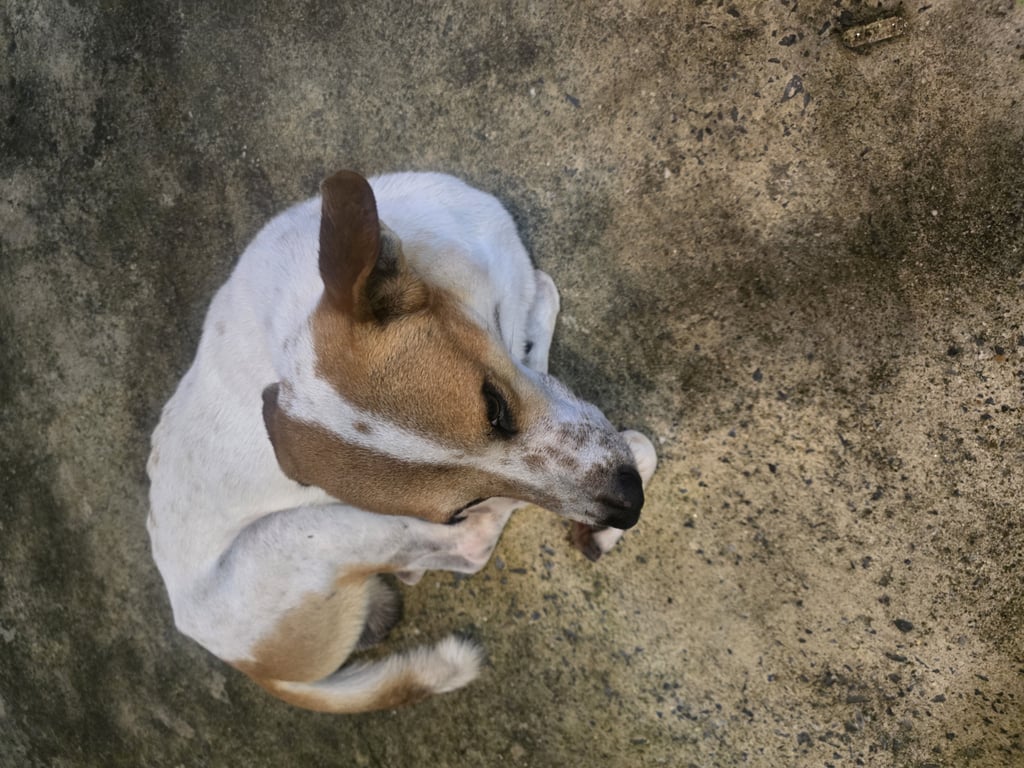 น้องหมาอยูตรงถนน หน้าห้องเช่า หอพักแสนสุข ตึกสีฟ้า หน้าตึกมีร้านส้มตำคอนกลางคืน น้องเขื่องมาก กลัวคนเสียงดัง