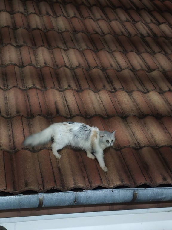 ขนฟูยาว สีขาวปนสมนิดๆ มีเทานิดๆ