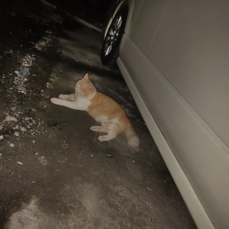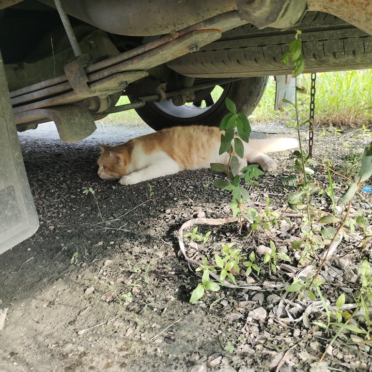 พบเห็นตรงบริเวณลานจอดรถ น้องนอนอยู่ใต้รถ