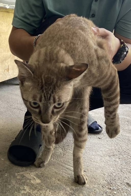 น้องหลงมาที่โกดังที่ทำงาน ตัวใหญ่ ให้อุ้มได้ แต่ขี้กลัว กลัวเสียงรถ กลัวข้างนอกตึก เก็บตัวแอบในซอก