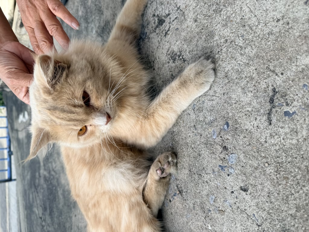 แมวเปอร์เซียสีส้ม ขนยาว ขนฟู หางสั้น ตาสีเหลืองส้ม เชื่อง ขี้อ้อน