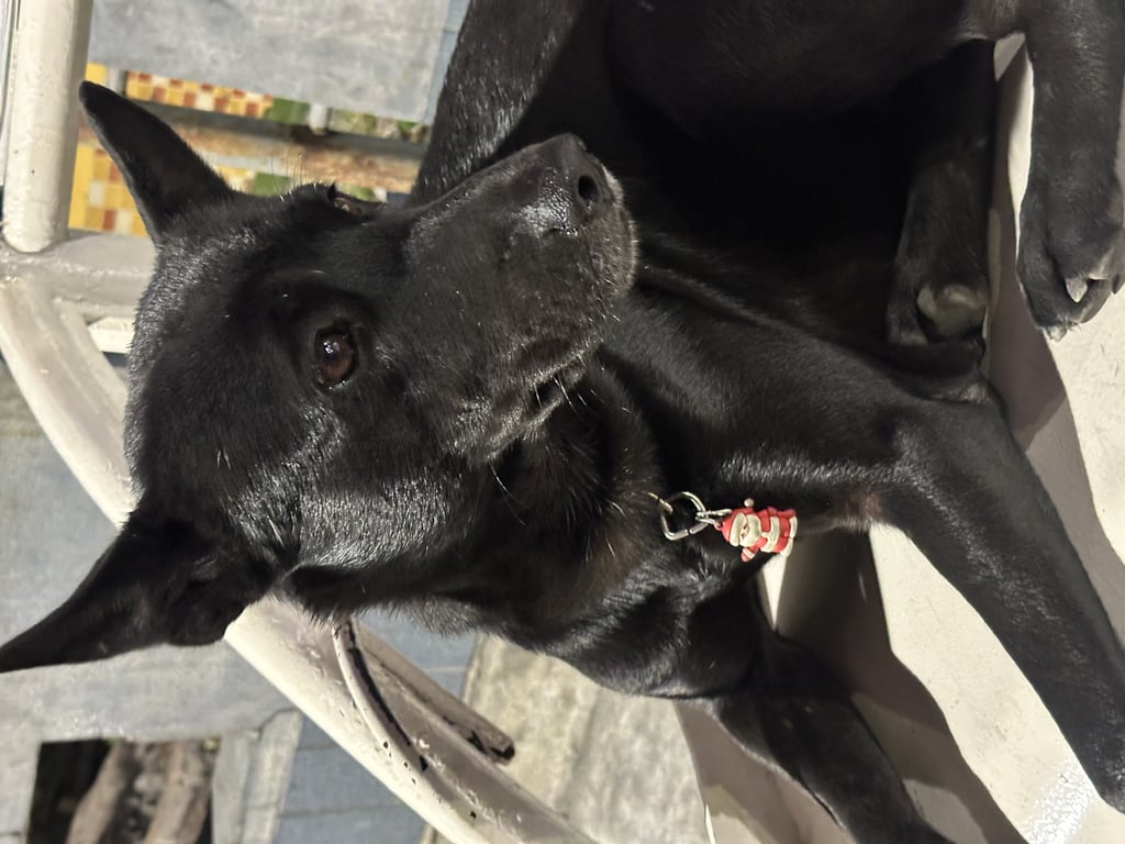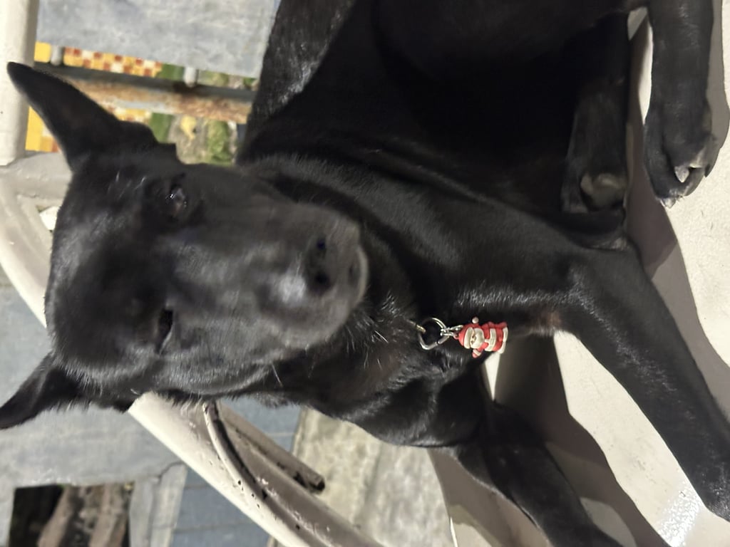 หมาเพศผู้สีดำหมาเพศผู้สีดำทั้งตัว สร้อยสีเงิน มีกระดิ่งซานตาคลอส เห็นอยู่หน้าปั๊ม Shell มา4-5 วันแล้ว