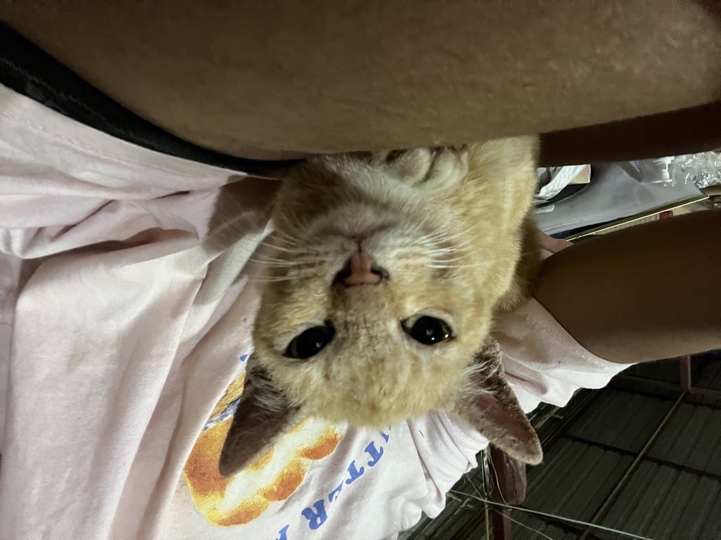 สีส้มทั้งคัว ตอนที่เจอผอมมาก หน้าบวมสันนิษฐานว่าอาจจะโดนกัดมาแต่น้องเชื่องมาก เดินมานั่งตักเอง มาเฟียขาถูขา เรียกก็มาหา