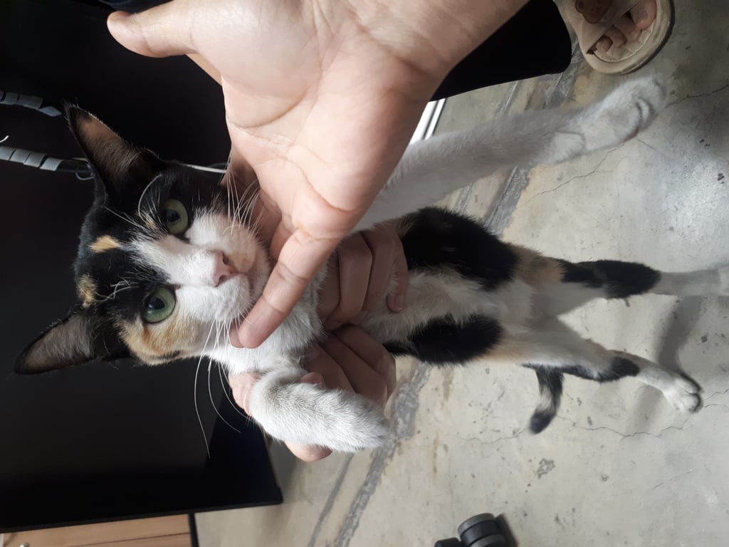 เป็นแมวขี้อ้อน และมีสามสี ขาว ดำ ส้ม ที่หน้าฝากมีแต้มสีส้ม ขาวทั้งสีสีขาว ตัวสีดำกับส้มคละกัน น้องน่าจะท้องสาว พอดีน้องติดรถของลูกค้าเข้ามาที่ศูนย์ เบนซ์Bkkกาญจนาภิเษกบางแคติดสำนักงานเขตบางแค เลยดูแลน้องไว้ก่อน บ้านของลูกค้าอยู่ มบ.ลดาวัลพระราม2